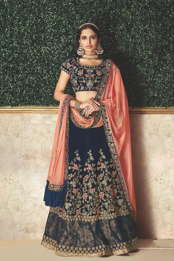 Blue-Pink Banarasi Silk Wedding Lehenga Choli