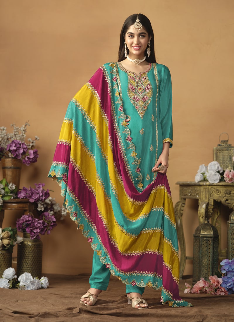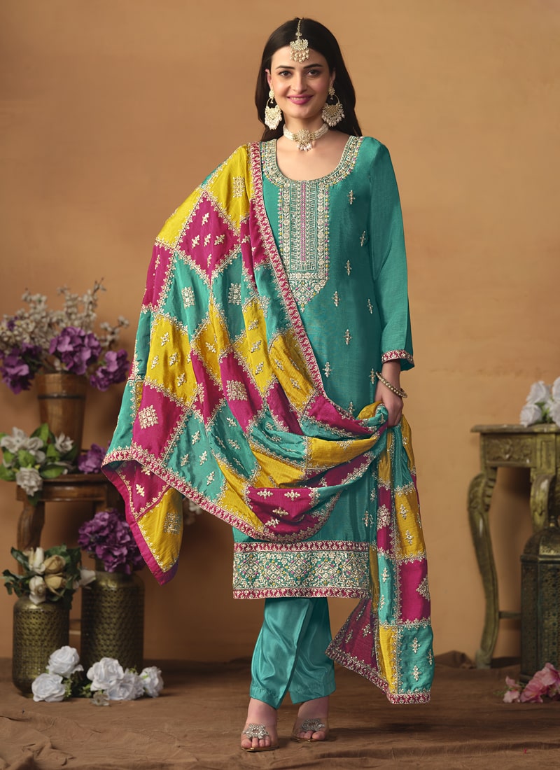 Chic And Comfortable Punjabi Salwar Suit in Chinon Silk