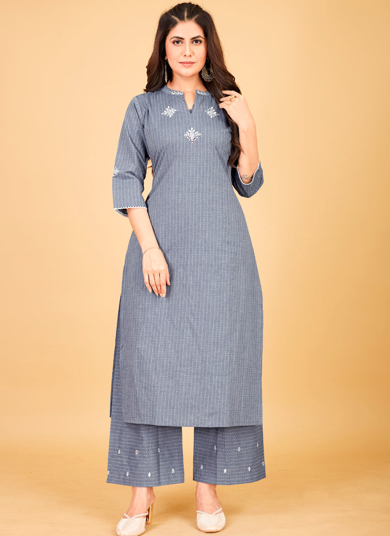 Denim Cotton Plazzo Suit with Stunning Mirror Work