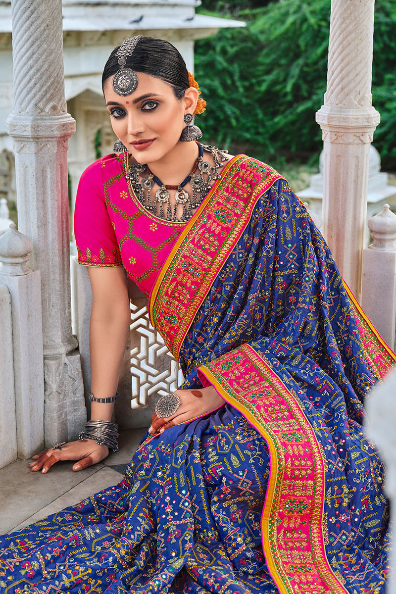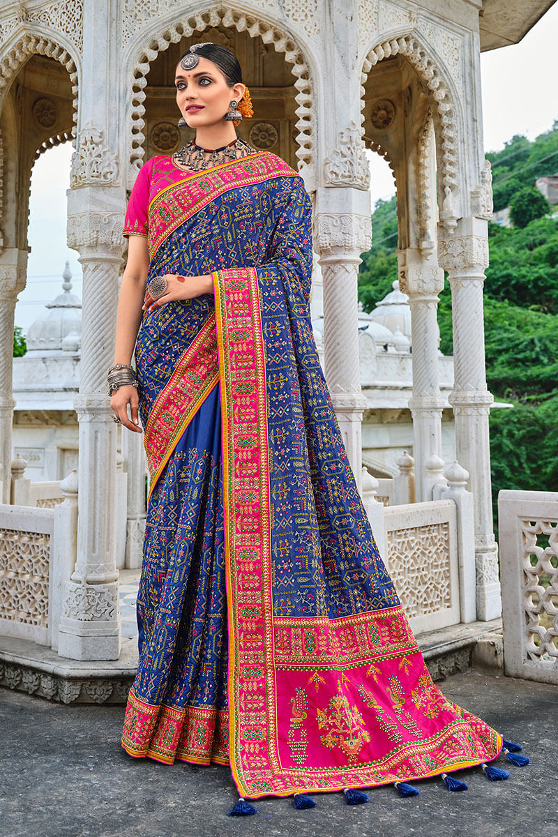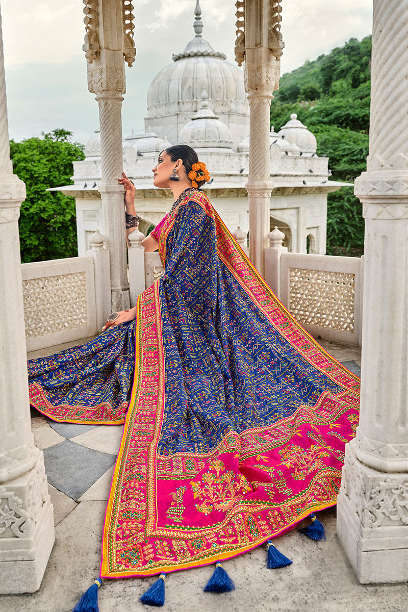 Blue Designer Banarasi Silk Saree with Pure Kachi Work