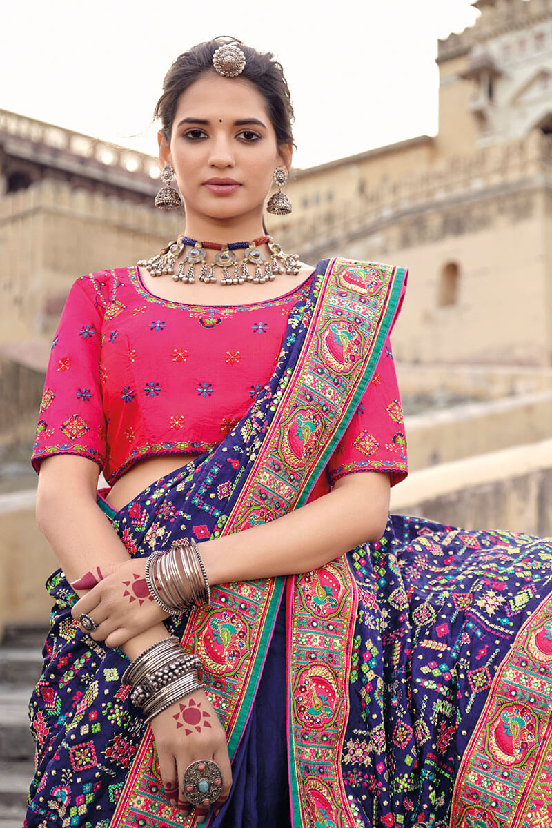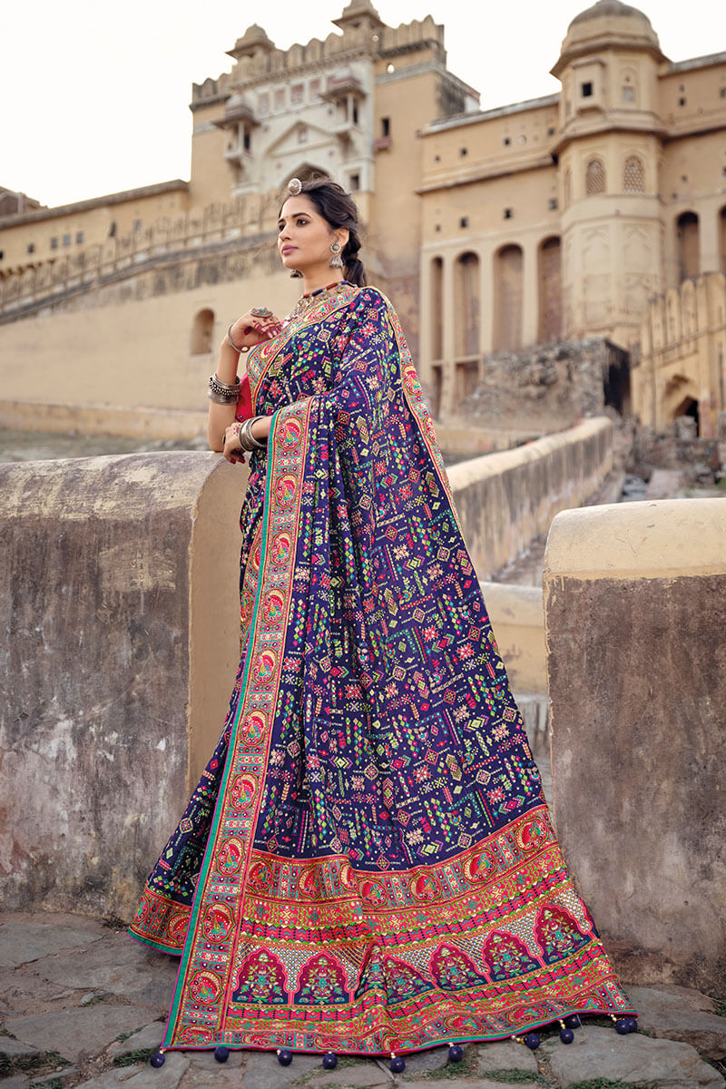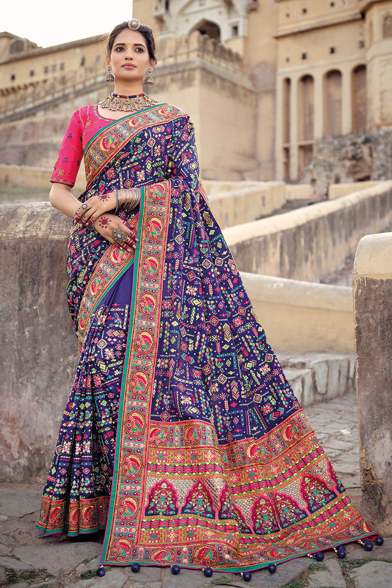 Purple Designer Banarasi Silk Saree with Pure Kachi Work